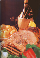 Die Lammkeule, vom Fett befreien, waschen und abtrocknen. An verschiedenen Stellen mit der Messerspitze kleine Schlitze einschneiden und in die Öffnungen den zuvor geschälten und in Spalten geschnittenen Knoblauch mit etwas Salz und Pfeffer reindrücken. Gespickte Keule jetzt von außen mit den vermischten Gewürzen ( Salz, Pfeffer, Oregano, feingewiegte Petersilie und abgeriebene Zitronenschale ) gut einreiben. Mit dem Saft einer Zitrone beträufeln. Das Fleisch kann jetzt bis24 Stunden,